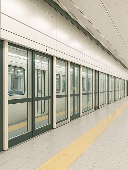 A Platform Screen Door (PSD) is an automated glass door system installed along the platform edge of metro and train stations that opens in perfect sync when the train arrives. By preventing passengers from falling onto the tracks, it averts serious accidents. It also regulates airflow, temperature, and noise within the station, providing a more comfortable and secure travel experience. Widely adopted in modern urban transit networks, PSD systems elevate safety, energy efficiency, and hygiene standards in public transportation.